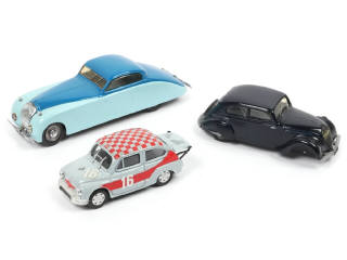 comprend : kit monté PEUGEOT 601 de la marque CJM & PEUGEOT 202 (montée par J.P GAUTIER - marque AMR - une roue manquante) & ABARTH de la marque PROJETTO K