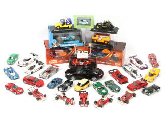 3 modèles radio-commandés (non testés, un modèle sans radio-commande) - carrosseries plus ou moins encrassées - différentes échelles - on y retrouve notamment les marques : MAJORETTE, NOREV, WELLY & JOUEF EVOLUTION - comprend notamment les modèles : MINI, SUBARU, AUDI & JAGUAR - 6 modèles en boîte en états 'b' - on y joint 2 panneaux de signalisation & une notice de la marque DINKY TOYS en états 'B' - possibilité de manques & parties cassées