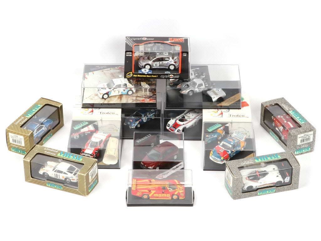 on y retrouve les marques : TROFEU, VITESSE & SKID - comprend les modèles : PEUGEOT, PORSCHE, RENAULT, FERRARI, LANCIA & CHEVROLET - possibilité de manques & parties cassées
