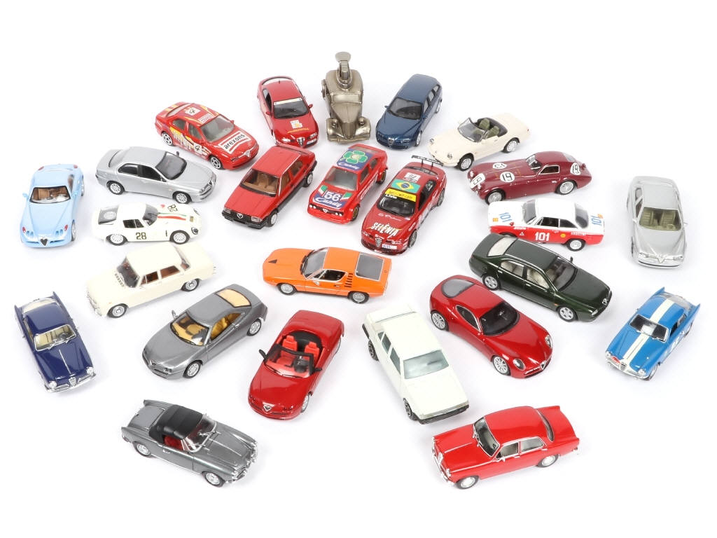 un briquet en forme de CITROËN 15 SIX de 1939 - on y retrouve notamment les marques : SOLIDO, MINICHAMPS, WELLY, DETAIL CARS, IXO & BBURAGO - comprend les modèles : ALFA ROMEO - manques & parties cassées