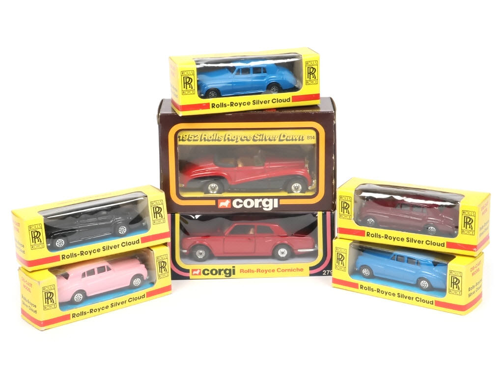 comprend les modèles : CORNICHE, SILVER DAWN & SILVER CLOUD (5 exemplaires) - on y retrouve les marques : SEEROL & CORGI TOYS - quelques boites en état 'c'