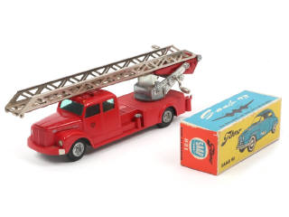 manque dévidoir & un volant de stabilisateur - importants frottements sur le support d'échelle (une petite partie déformée) - 2 détails de peinture blanche ajoutés sur les extrémités de pare-chocs - on y joint une boîte vide de la référence 821 en état 'b' avec très légères taches & manques de papier par endroits