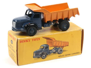 DINKY TOYS (FRANCE) 34A BERLIET Benne carrière MARREL (version avec jantes convexes) bleu foncé & orange