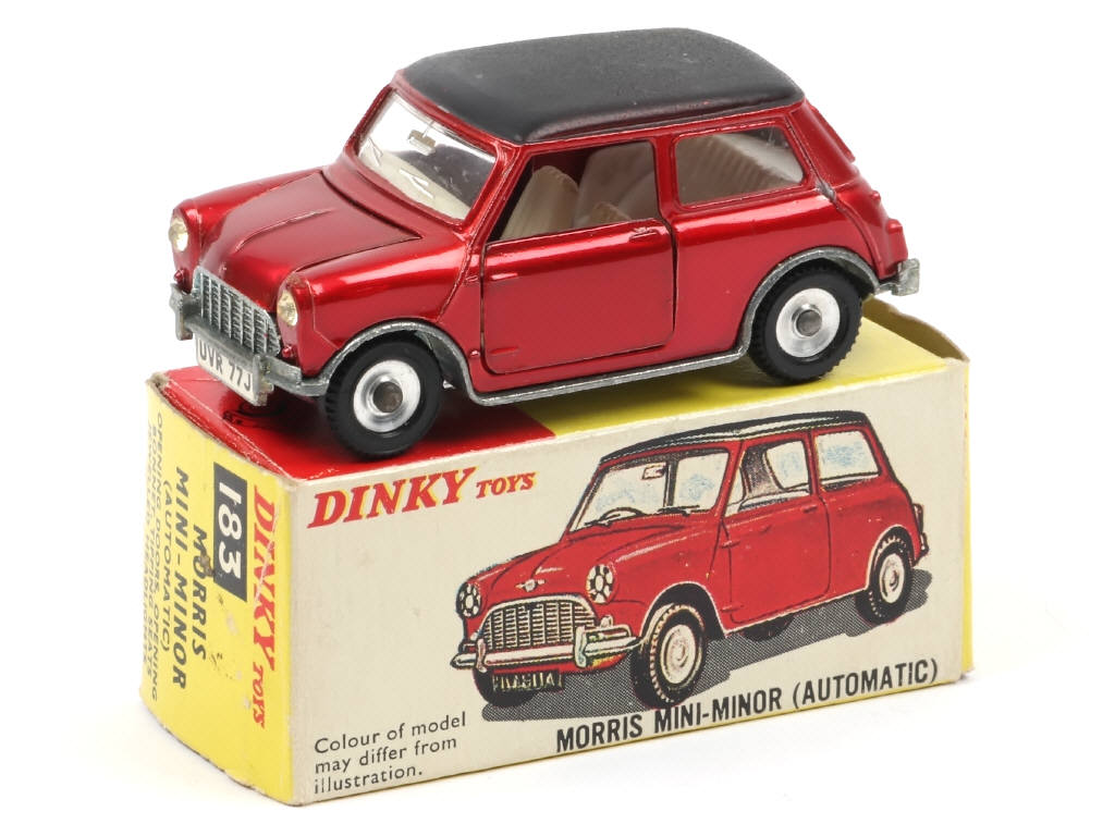 DINKY TOYS (GB) 183 MORRIS MINI MINOR Automatic rouge métal, toit noir