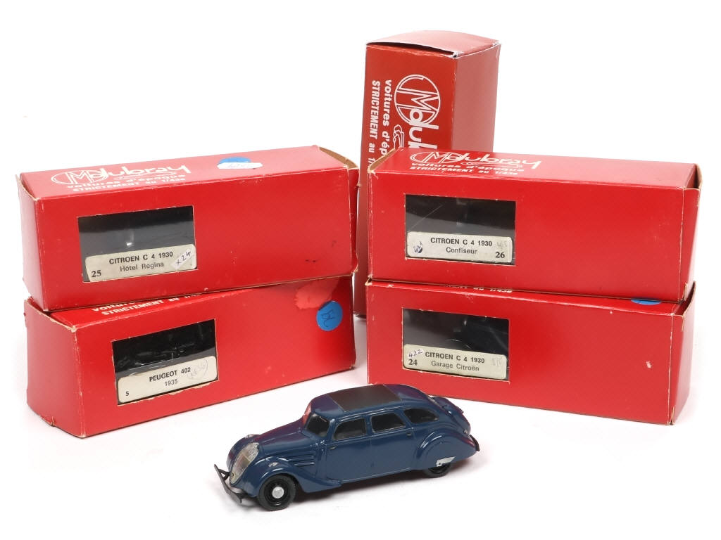 comprend les modèles : PEUGEOT 402B 1932, 1938 & 1938 & CITROEN C4 1930 - boites en états 'b' à 'd' - un suremballage non d'origine & sans boite