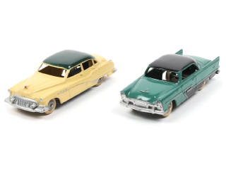 comprend : PLYMOUTH BELVEDERE (état 'A', pneus séchés) & BUICK ROADMASTER (état 'B', pneus séchés, quelques éclats plus ou moins importants sur la carrosserie par endroits)