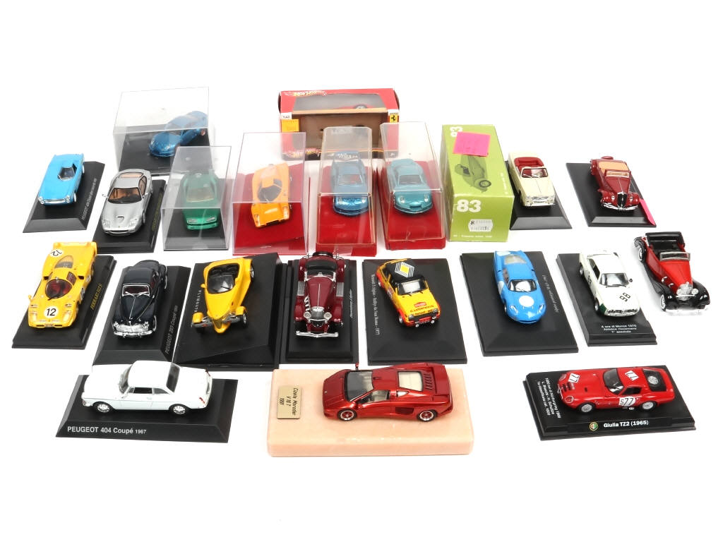 miniatures reproduisant notamment les modèles : PEUGEOT, RENAULT, FERRARI & CITROEN - on y retrouve les marques : RIO, SOLIDO & HOTWHEELS - avec manques, parties cassées, détails ajoutés & transformations