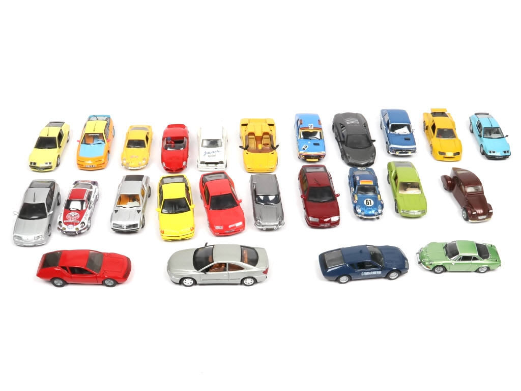miniatures reproduisant notamment les modèles : PEUGEOT, RENAULT, FERRARI & CITROEN - on y retrouve les marques : ELIGOR, NOREV, VEREM & SOLIDO - avec manques, parties cassées, détails ajoutés & transformations