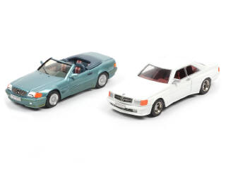 comprend les modèles : 500 SEC AMG (manque un rétroviseur, une partie vitrée décollée) & 500 SL