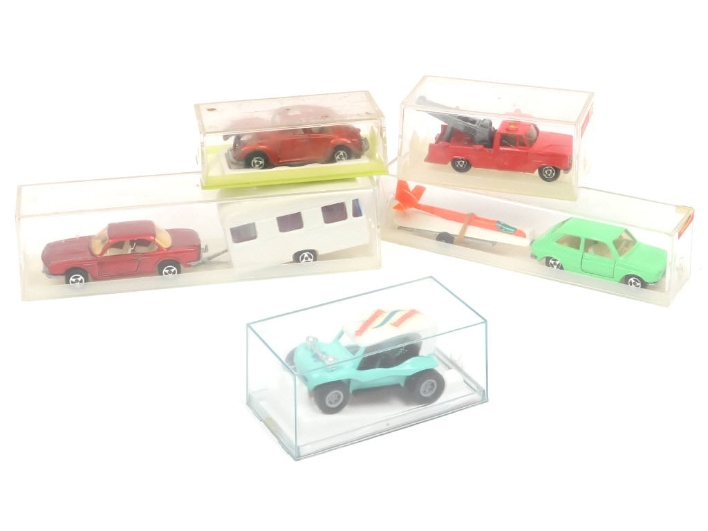 comprend notamment les modèles : BUGGY (PROMOTIONNEL CHAMBOURCY), FIAT, BMW & VOLKSWAGEN - boites en états 'b' à 'd' (manque socles de désignation)