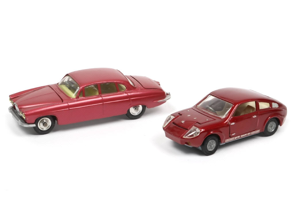 comprend : JAGUAR MARK X SALOON (avec 2 bagages) & MINI MARCOS GT 850 (petits détails de peinture ajoutés) - pneus plus ou moins séchés