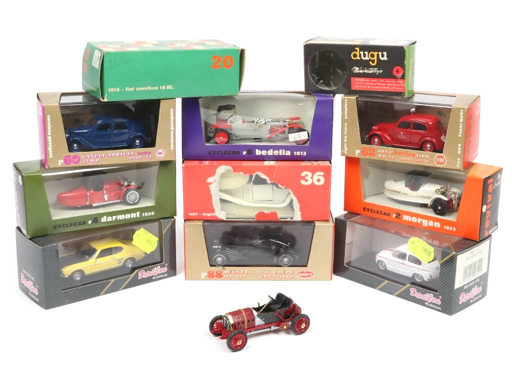 compend notamment les modèles : BUGATTI, FIAT, FORD & LANCIA - on y retrouve les marques : DETAILCARS, BRUMM, RIO & DUGU - quelques boites en états 'c' & 'd'