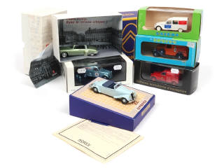 comprend notamment : camionnette 500 KG, 2 CV pompiers de Paris, AZU 1955 & DS cabriolet - on y retrouve les marques : SOLIDO, ELIGOR & NOREV - certaines boites en état 'c'