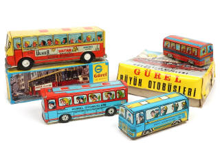GÜREL (TURQUIE) Ensemble de 4 autobus en tôle lithographiée