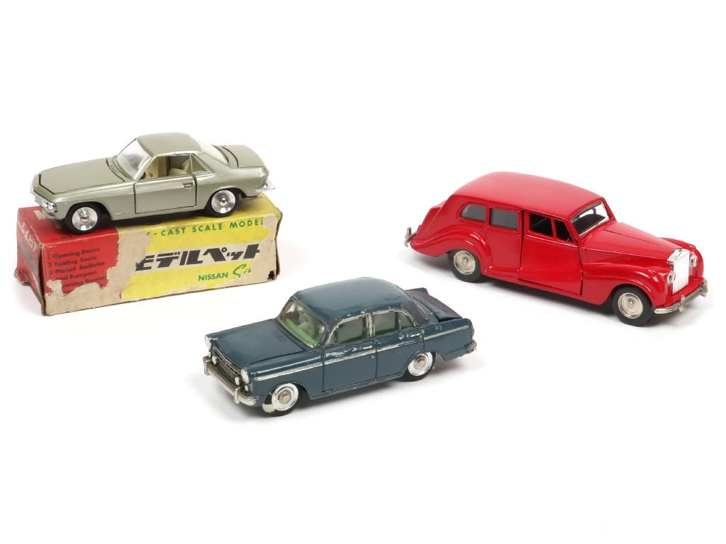 comprend notamment : ROLLS ROYCE, NISSAN SILVIA (pare-chocs avant cassé à recoller - boite en état 'd') & - on y retrouve notamment les marques : K.K SAKURA & ASAHI-ATC MODEL PET - pneus séchés (certains avec résidus de colle)