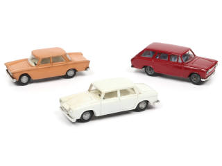 série plastique - comprend : LANCIA FLAVIA & FIAT 1300 - 2 carrosseries encrassées - manques de pellicule chromée sur certains pare-chocs - traces d'oxydation sur les axes de roues & les vis de plancher