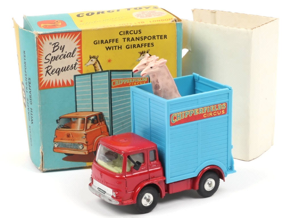 CORGI TOYS (GB) 503 BEDFORD TK Transport de girafes 'CHIPPERFIELDS CIRCUS' rouge & bleu ciel