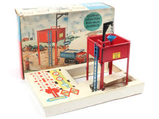 comprend : trémie 'SABLIERES de la LOIRE' avec son godet & cale de fond de boîte avec parties cartonnées amovibles (non détachées) - manque SAVIEM JL20 - boîte légèrement encrassée & tachée (une étiquette collée sur couvercle)