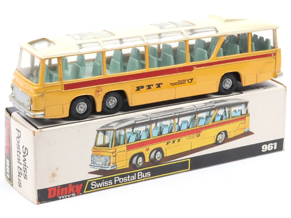 DINKY TOYS (GB) 961 VEGA MAJOR COACH 'P.T.T' SUISSE jaune, rouge & crème