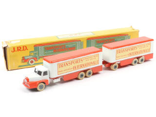 JRD (FRANCE) 127 UNIC LAUTARET 'TRANSPORTS INTERNATIONAUX' avec remorque orange & blanc