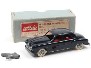 série 'JUNIOR' - non motorisé - pneus tachés (souples) & un autre séché, jaunis & très légèrement affaissé - quelques traces de métal fatigue plus ou moins importantes sur la carrosserie par endroits (dont 3 majeures avec un manque de matière) - traces d'oxydation sur le plancher - couvercle de boîte décoloré & légèrement taché (quelques annotations) - on y joint une clef de la marque