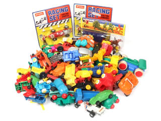 différentes échelles - réalisation majoritairement en plastique - on y retrouve notamment lesmarques : TOMTE, LUCKY (2 exemplaires sous blisters jamais ouverts, état 'b'), COFALU (blister en état 'b'), CRIO & TONKA - quelques exemplaires plus ou moins encrassés (un en état 'D' & un autre peint, kit monté) - quelques petits manques - on y joint une boîte de figurines