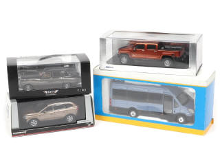 comprend : DAIMLER MAJESTIC MAJOR, HUMMER HT3 2008, VOLVO XC60 & IVECO IRISBUS (un rétroviseur à recoller - boite non conforme de marque LION-CAR avec annotations) - on y retrouve les marques : ROS, SPARK, NEO & MOTORART