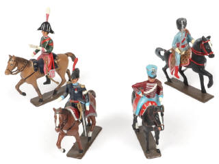 C.B.G. (FRANCE) Ensemble de 4 cavaliers du Premier Empire sur leurs montures
