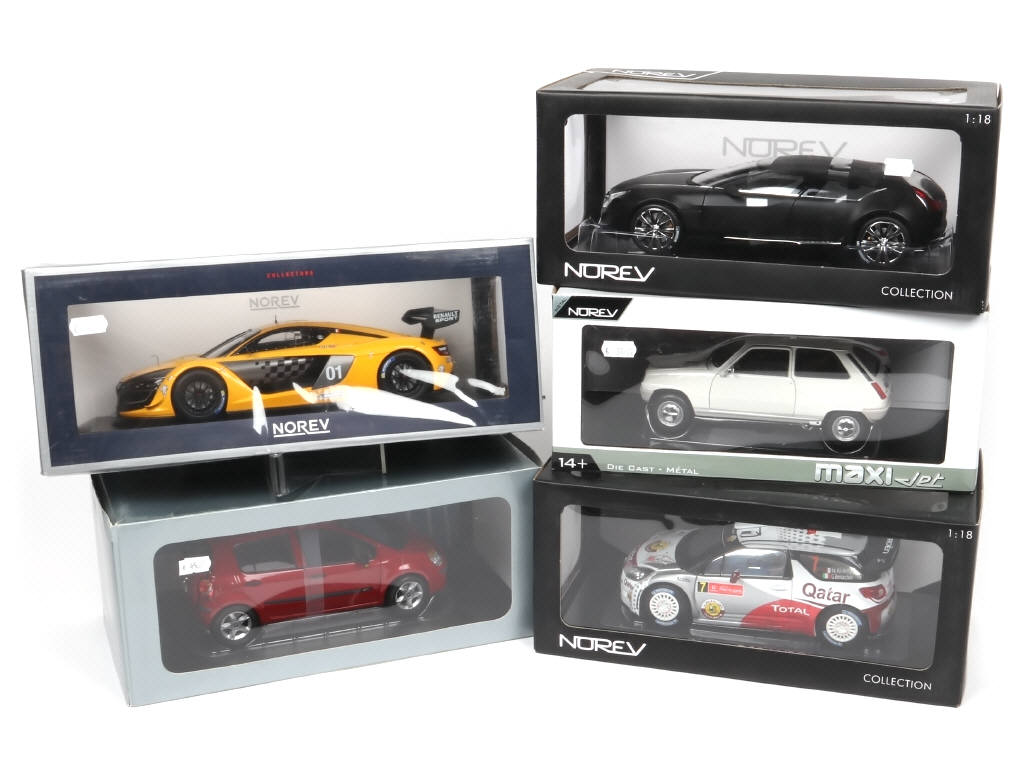 échelle 1/18ème - comprend : CITROEN C METISSE, DS3 WRC, RENAULT 5, MODUS & RS 01 - quelques petits frottements sur certaines boites