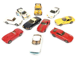9 kits montés en résine & autre transformé sur base SOLIDO - miniatures reproduisant notamment les modèles : PEUGEOT, FERRARI & ALPINE - on y retrouve notamment les marques : PROVENCE MOULAGE, STARTER & M.R.F - avec manques, parties cassées & déformées (plus ou moins importants suivant les modèles)