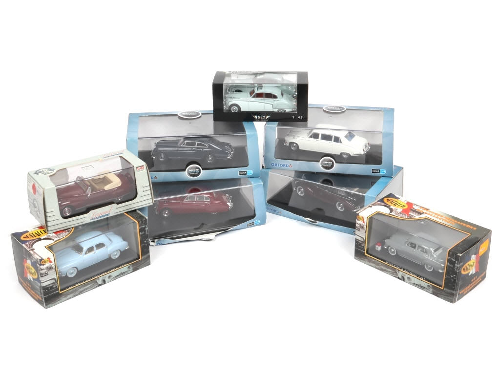 comprend notamment les modèles : RENAULT, SIMCA, JAGUAR & ROLLS ROYCE - on y retrouve les marques : OXFORD, NOLSTAGIE, NEO & UNIVERSAL HOBBIES - quelques boites en état 'c'