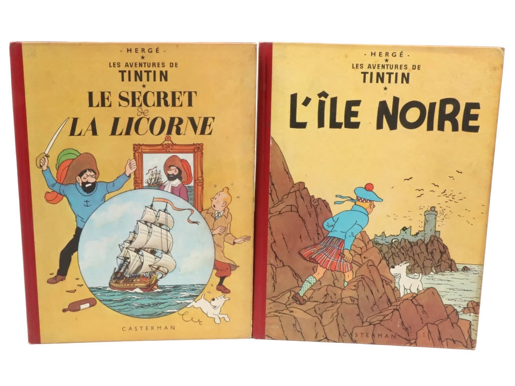 comprend : LE SECRET DE LA LICORNE & L'ILE NOIRE (Rééd 1954 4e plat B11) - bon état général - quelques frottements notamment sur les coins & coiffes - quelques rousseurs sur les pages