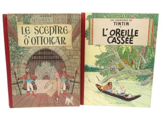 comprend : LE SCEPTRE D'OTTOKAR (Rééd 1949 4e plat B3 - état moyen - inscription en page de titre - petite déchirure sur la dernière page) & L'OREILLE CASSEE (Rééd 1956 4e plat B18 - très bon état général - quelques frottements)