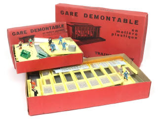 comprend les références : 22 & 22A - possibilité de petits accessoires manquants - coffrets légèrement tachés - on y joint 10 personnages de gare de la marque (sans boîte)