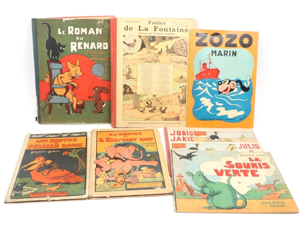 illustrations par BENJAMIN RABIER (sauf ZOZO) - on y retrouve notamment : LES CONTES DU PELICAN ROUGE, DE L'ELEPHANT ROSE & LE ROMAN DU RENARD - état général moyen