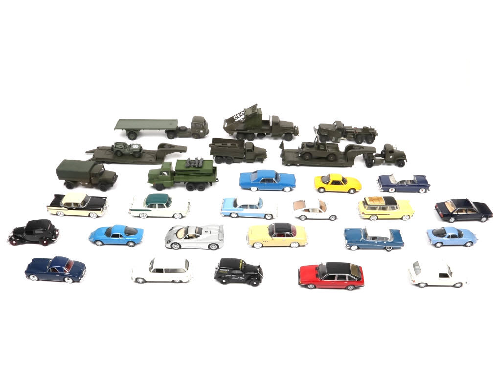 quelques exemplaires avec transformations sur base - comprend notamment les modèles : TALBOT, FORD, SIMCA, LAND ROVER & BROCKWAY - on y retrouve notamment les marques : C.I.J, DINKY TOYS & SOLIDO - avec manques, parties cassées et éléments non conformes
