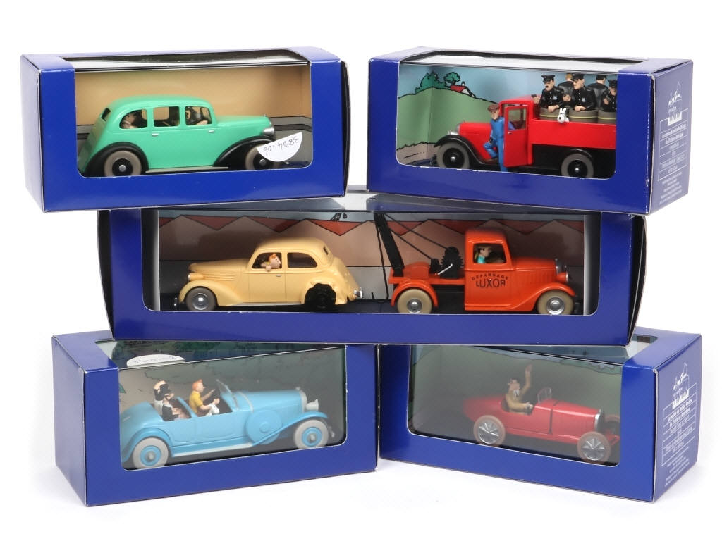 collection 'EN VOITURE TINTIN' - comprend les références : 2 118 024, 041, 054, 005 & 058 - étiquettes sur les boites