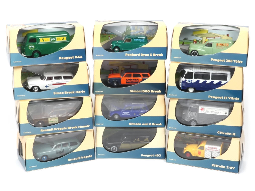 collection 'LES PETITS UTILITAIRES FRANCAIS' - miniatures reproduisant les modèles : RENAULT, PEUGEOT, CITROËN, PANHARD & SIMCA