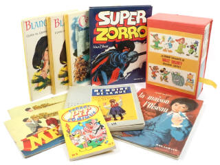 comprend : le deuxième coffret 'LE MONDE ENCHANTE DE WALT DISNEY', 2 catalogues MECCANO 4A & 5A, un PIF COMIQUE, livre 'MEMOIRE DE LA RUE', ouvrages pour enfants : 'LA MAISON DE L'OISEAU, SUPER ZORRO, CENDRILLON & 2 exemplaires de BLANCHE NEIGE' - assez bon à très bon état - quelques traces d'usure, frottements & petites déchirures