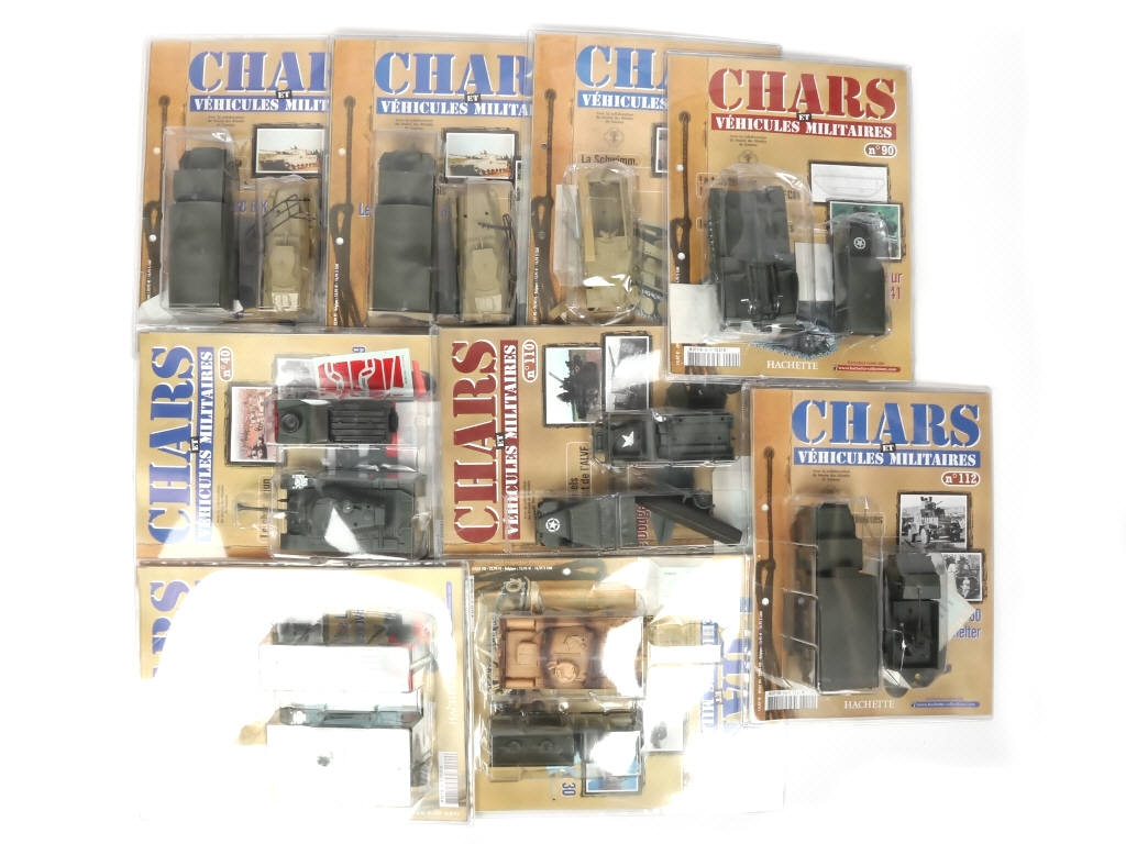 collection 'CHARS & VEHICULES MILITAIRES' - certains exemplaires en état 'A' avec quelques petits accessoires cassés - ensemble sous blisters jamais ouverts (certains en état 'c', avec fascicules)