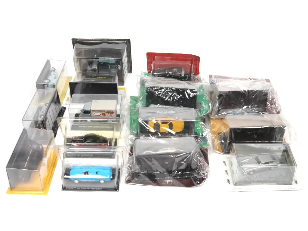 comprend notamment les modèles : CITROEN, MATRA, PEUGEOT, PANHARD & MERCEDES - on y retrouve notamment les marques : ALTAYA, FABBRI & ATLAS - possibilité de petits éléments cassés - quelques boites en état 'c'