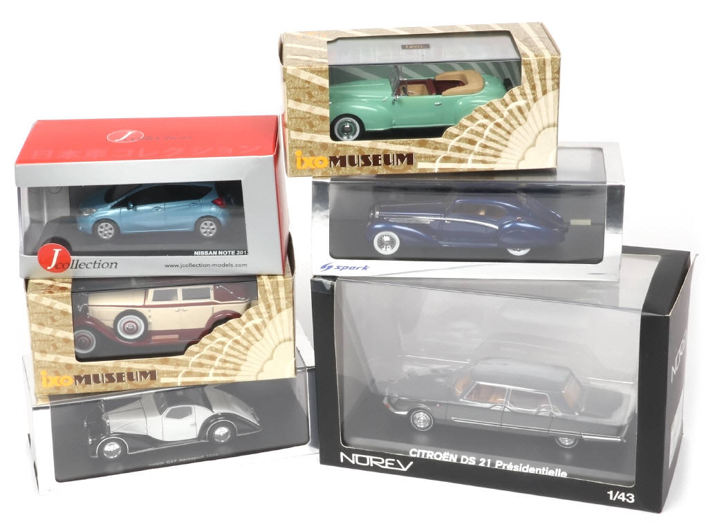 miniatures reproduisant les modèles : VOISIN, DELAGE, CITROËN, ISOTTA FRASCHINI, LINCOLN & NISSAN - on y retrouve les marques : SPARK, IXO, NOREV & J-COLLECTION - un suremballage en état 'c'