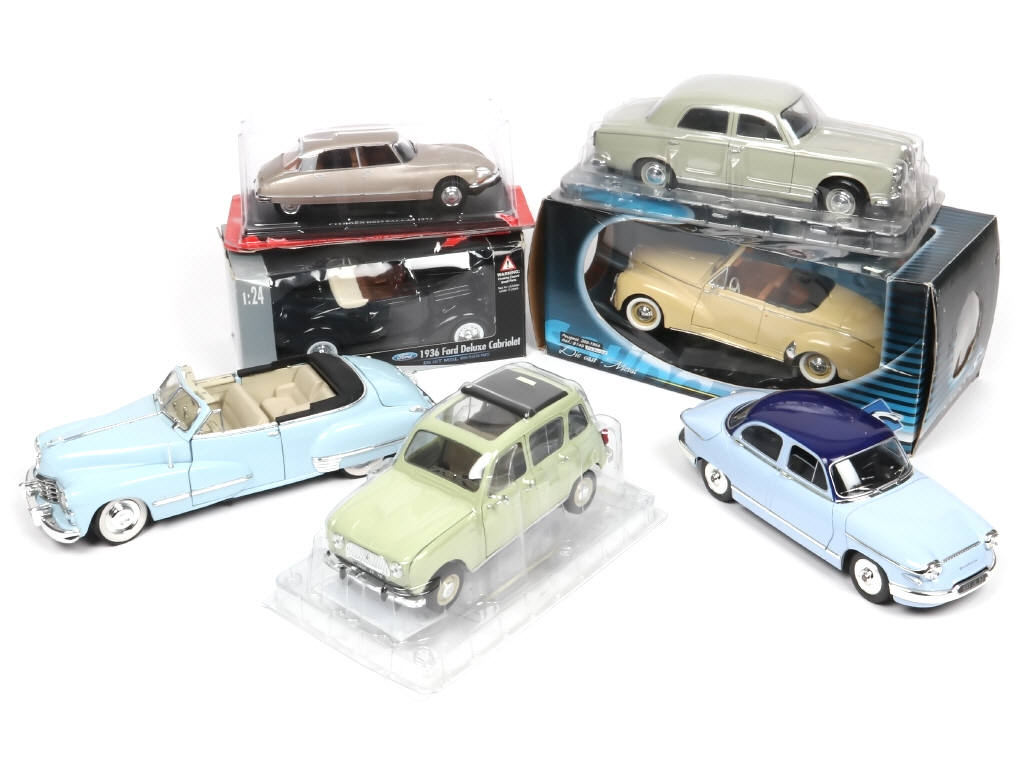 différentes grandes échelles - comprend notamment les modèles : PEUGEOT, CITROEN, PANHARD, CADILLAC, FORD & RENAULT - on y retrouve les marques : ANSON, WELLY, HACHETTE & SOLIDO - 5 modèles en boites dont certaines en état 'c'
