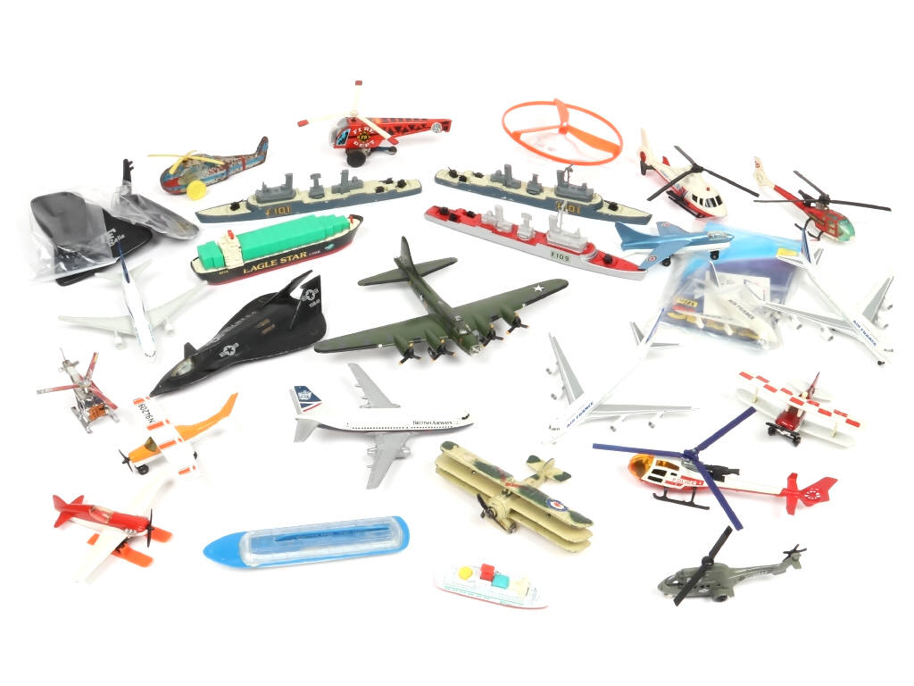 comprend : bateaux, avions & hélicoptères - on y retrouve notamment les marques : MATCHBOX, ERTL & MAJORETTE