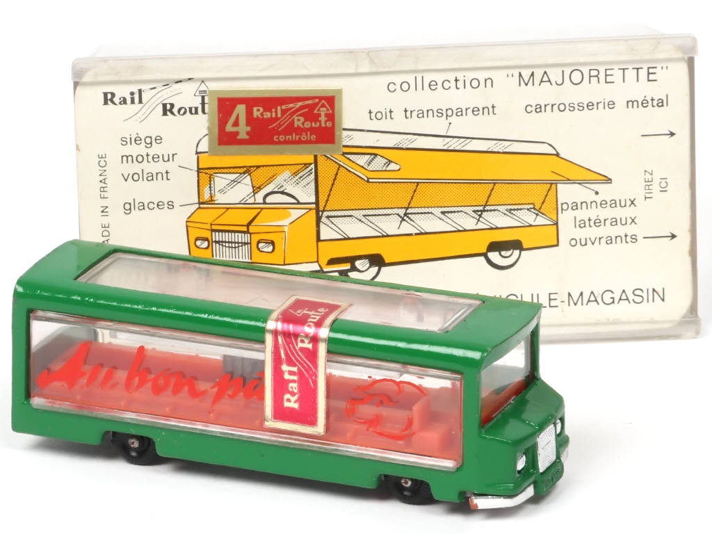 échelle 1/100ème - série 'RAIL ROUTE' - avec petit autocollant d'origine collé sur un côte du fourgon & un autre sur le socle cartonné - micro frottements sur la verrière de toit - micro fêlures sur le couvercle - ETAT EXCEPTIONNEL POUR UN MODELE AUSSI RARE !