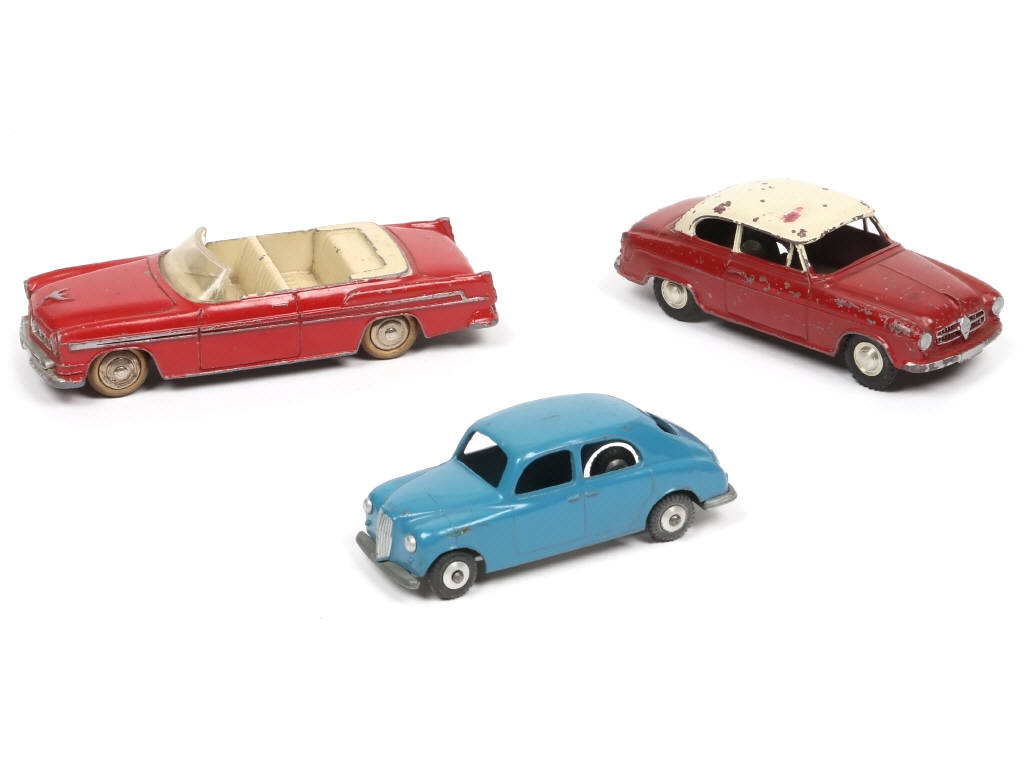 version avec phares emboîtés - quelques frottements & petits éclats par endroits - manque un pneu - on y joint une BORGWARD ISABELLA de la marque MÄRKLIN & une CHRYSLER NEW YORKER de la marque DINKY TOYS en état 'E'