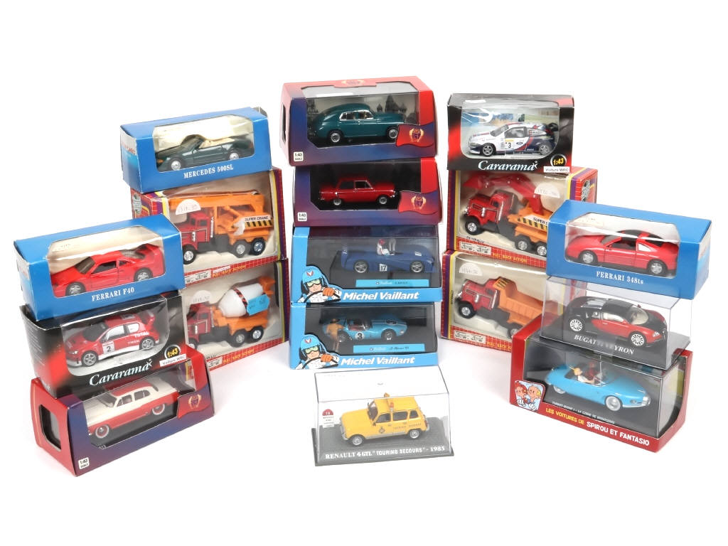 comprend notamment les modèles : ZAZ, GAZ, BUGATTI, FORD, PETERBILT & FERRARI - on y retrouve les marques : IST MODELS, GRATON, CARARAMA & EDITIONS ATLAS - quelques étiquettes sur les boites (manque quelques fixations de socle)