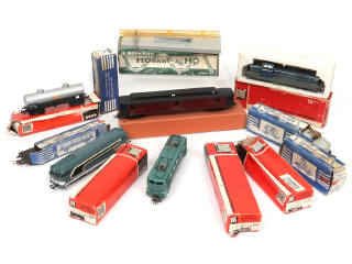 non testé - on y retrouve notamment les marques : HORNBY, JOUEF & S.M.C.F (référence 460) - avec manques, parties cassées & oxydées - quelques exemplaires encrassés - boites en états 'b' à 'd' (2 exemplaires sans)