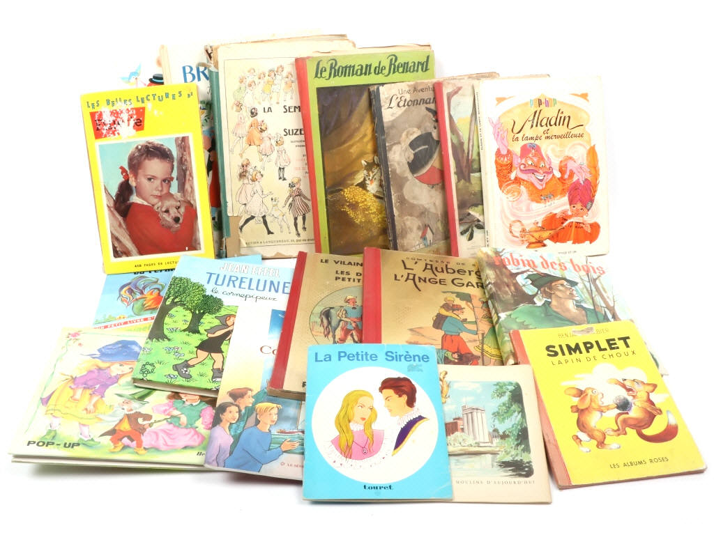 livres & bandes dessinées - mauvais à très bon état - comprend notamment : ALADIN, L'ETONNANT MONSIEUR GONFLO, LE ROMAN DE RENARD, TURELUNE, ROBIN DES BOIS, contes de la COMTESSE DE SEGUR & LE SEMAINE DE SUZETTE
