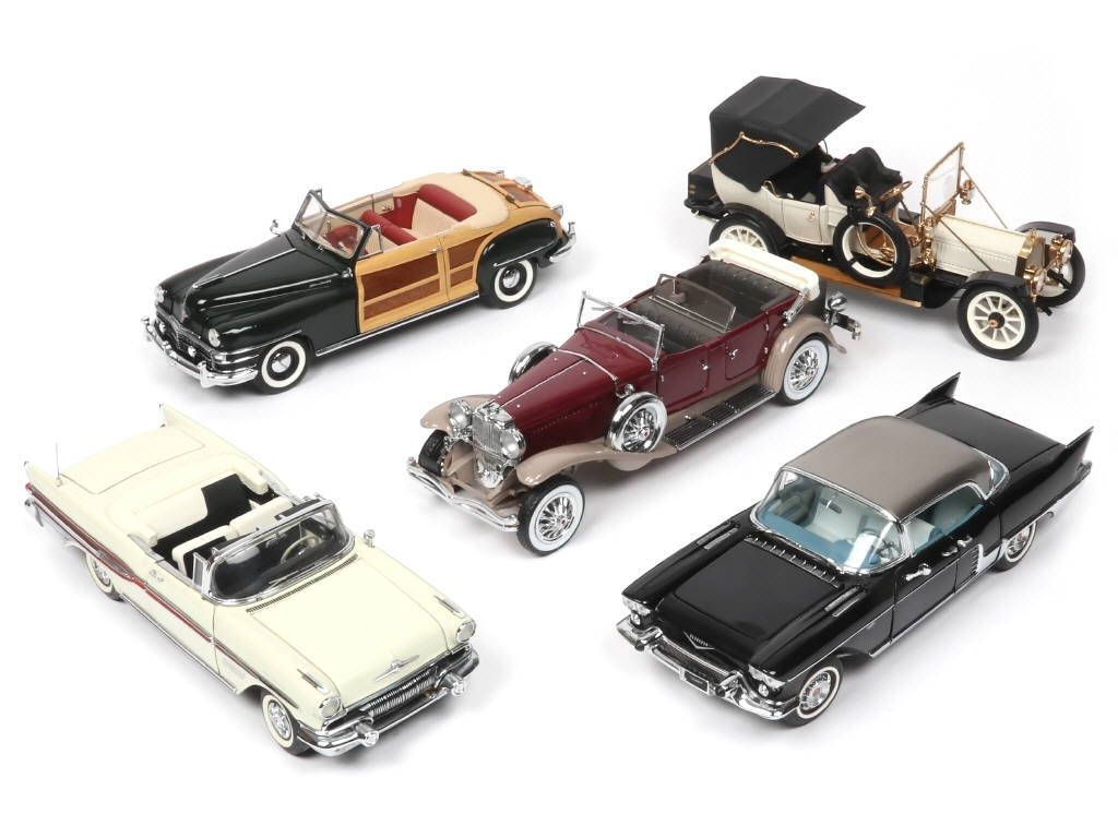 grandes échelles - miniatures reproduisant les modèles : CADILLAC, PONTIAC, DUSENBERG, CHRYSLER & PACKARD